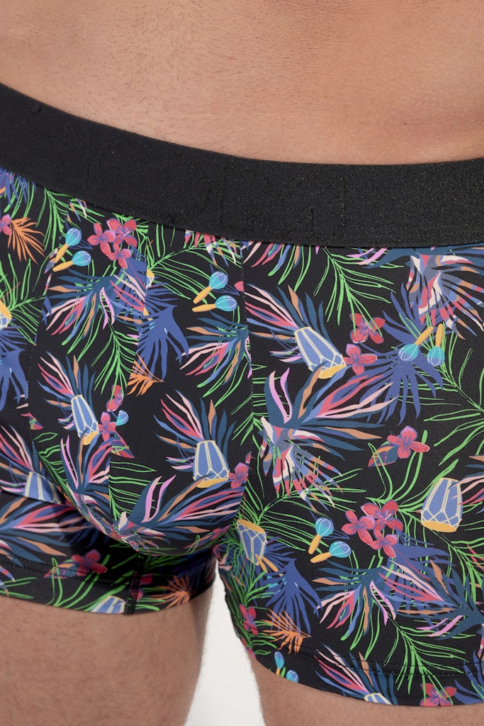 These boxer briefs feature a colorful and festive print inspired by Cuban nights. Made from soft microfiber, they hug the body and ensure a comfortable fit thanks to their elasticated support and anti-ride elasticated panel at the bottom of the leg.Materials + Care