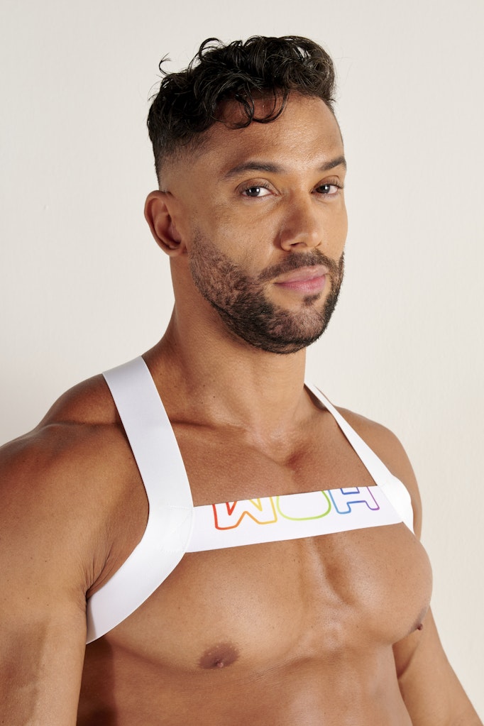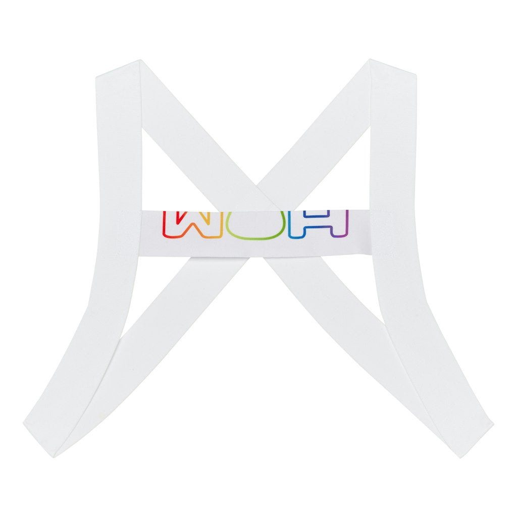 This simple and comfortable harness is made of wide elastic bands with a crossover at the back, featuring a WOH logo on the chest. The H-shape on the front highlights the chest. This accessory is a must-have to complete your SEXY FUN look.Materials + Care