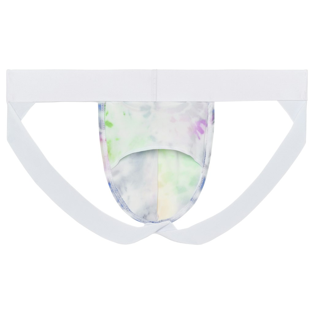 The Sexy Fun jockstrap has a provocative sensuality thanks to its sexy cut and rainbow-inspired tie-dye print. The front cup envelops without compressing, while the two rear elastic bands reveal the buttocks in an athletic and daring style. It is the perfect underwear for those who love sexy and confident men's lingerie.Materials + Care
