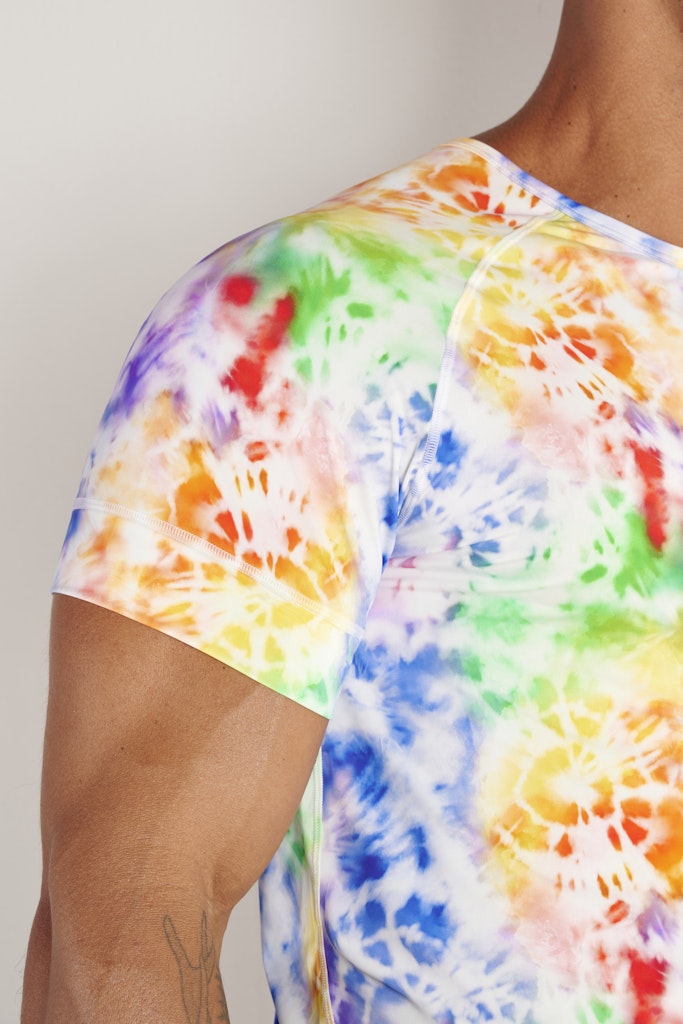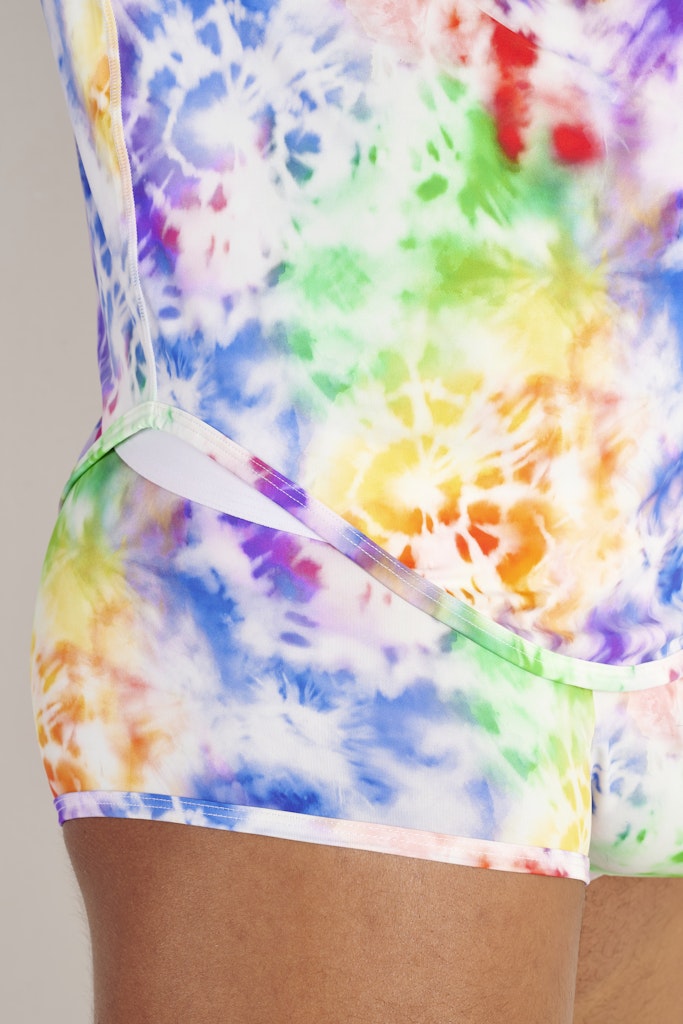 The Sexy Fun t-shirt in lightweight, soft and stretchy microfiber is enhanced by a rainbow tie-dye pattern. Its close-fitting cut gives it a sporty look and its flowing fabric makes it a decidedly sexy piece of men's lingerie.Materials + Care