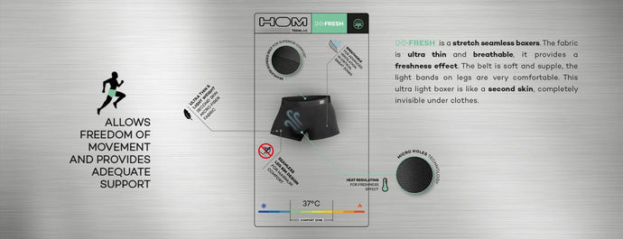 The H-Fresh line includes 3 comfort boxers and 1 comfort brief. Made in microfibre, these underwear are designed for everyday use in high temperatures. The microfibre fabric is super-thin and breathable, providing an instant cooling effect. Seamless on the thighs, made from an ultra-light, breathable fabric, with a soft, smooth waistband, this underwear feels like a second skin to the wearer.
