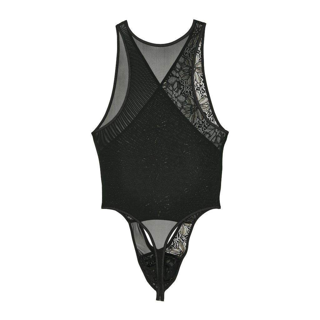 With its floral patterns in black and gold lace, the PURE SEDUCTION thong bodysuit is a must-have for those looking for seductive lingerie. This lace thong bodysuit is a very sexy and daring lingerie and jewelry line. Available in the WOH Collection, this model will certainly find a place in your wardrobe.Materials + Care