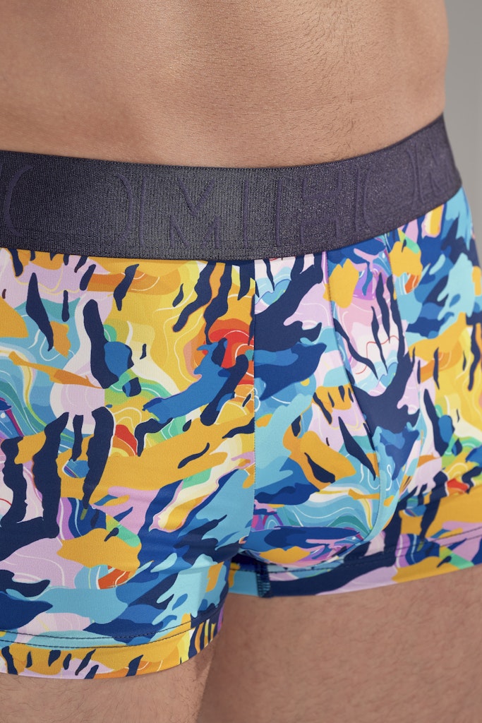 Trunk in soft, stretchy microfiber, with a short, fitted cut that stops at the top of the thigh for optimal support and freedom of movement. The low waistband naturally hugs the hips and ensures stability and comfort all day long. A modern, technical and bold pair of trunks boxer briefs, true to the creative spirit of the FUNKY STYLES line.Materials + Care