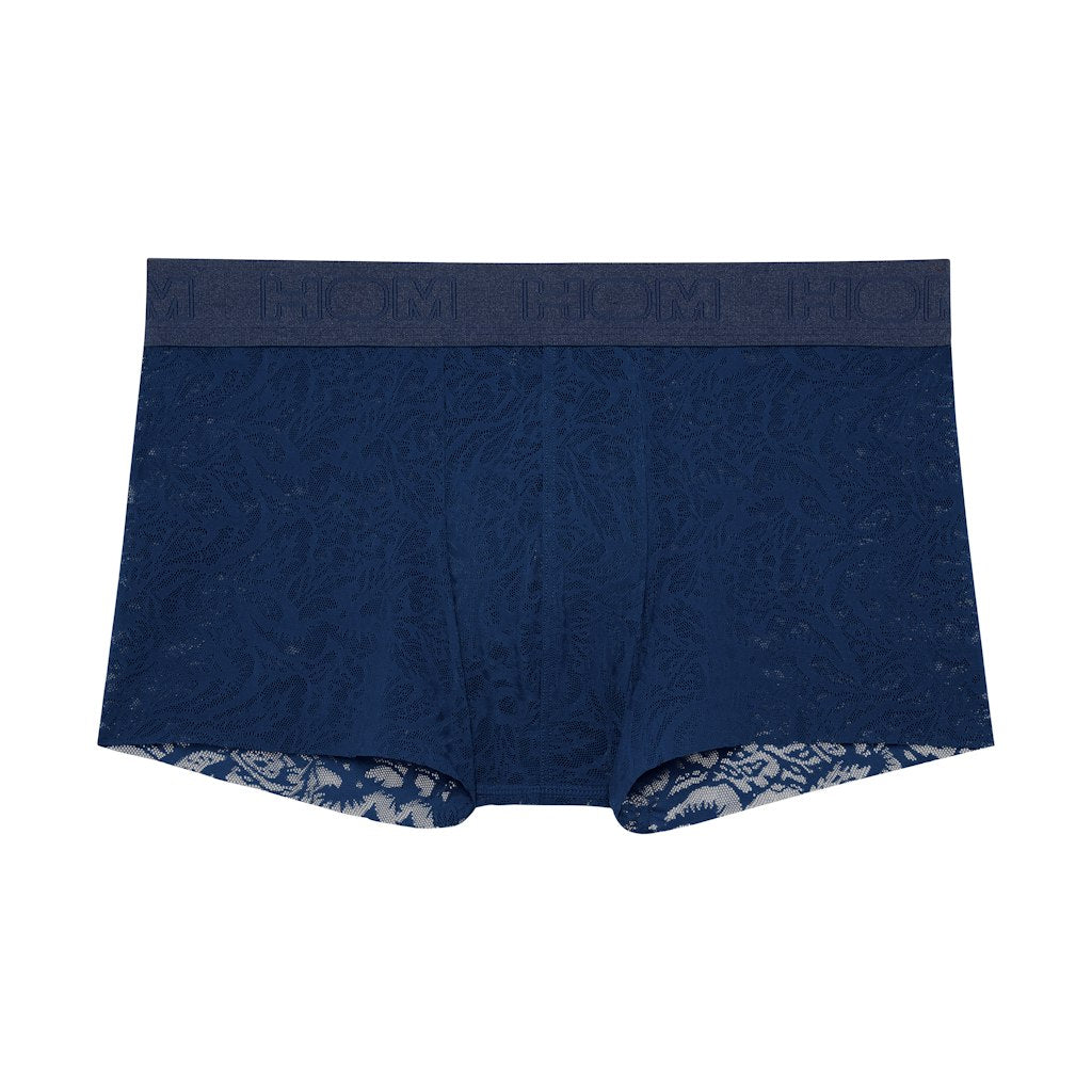 The HOM Free Cut Lace Trunk sits low on the waist and has a sheer body and pouch with a paisley lace pattern. These trunks contain a center back seam for a body-defining fit. These trunks are flyless and have a wide elastic waistband with repeating jacquard-knit HOM logo.