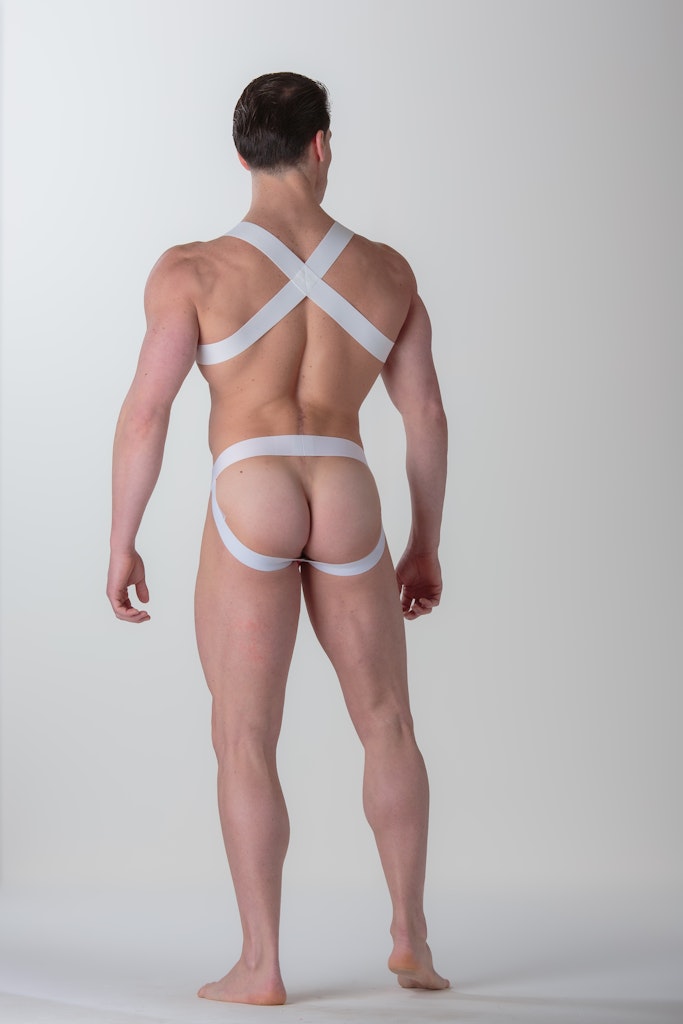 This simple and comfortable harness is made of wide elastic bands with a crossover at the back, featuring a WOH logo on the chest. The H-shape on the front highlights the chest. This accessory is a must-have to complete your SEXY FUN look.