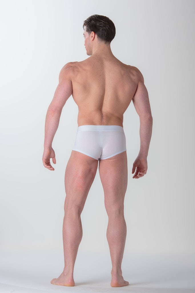• The short cut of these trunks stops just below the buttocks and features a low waist