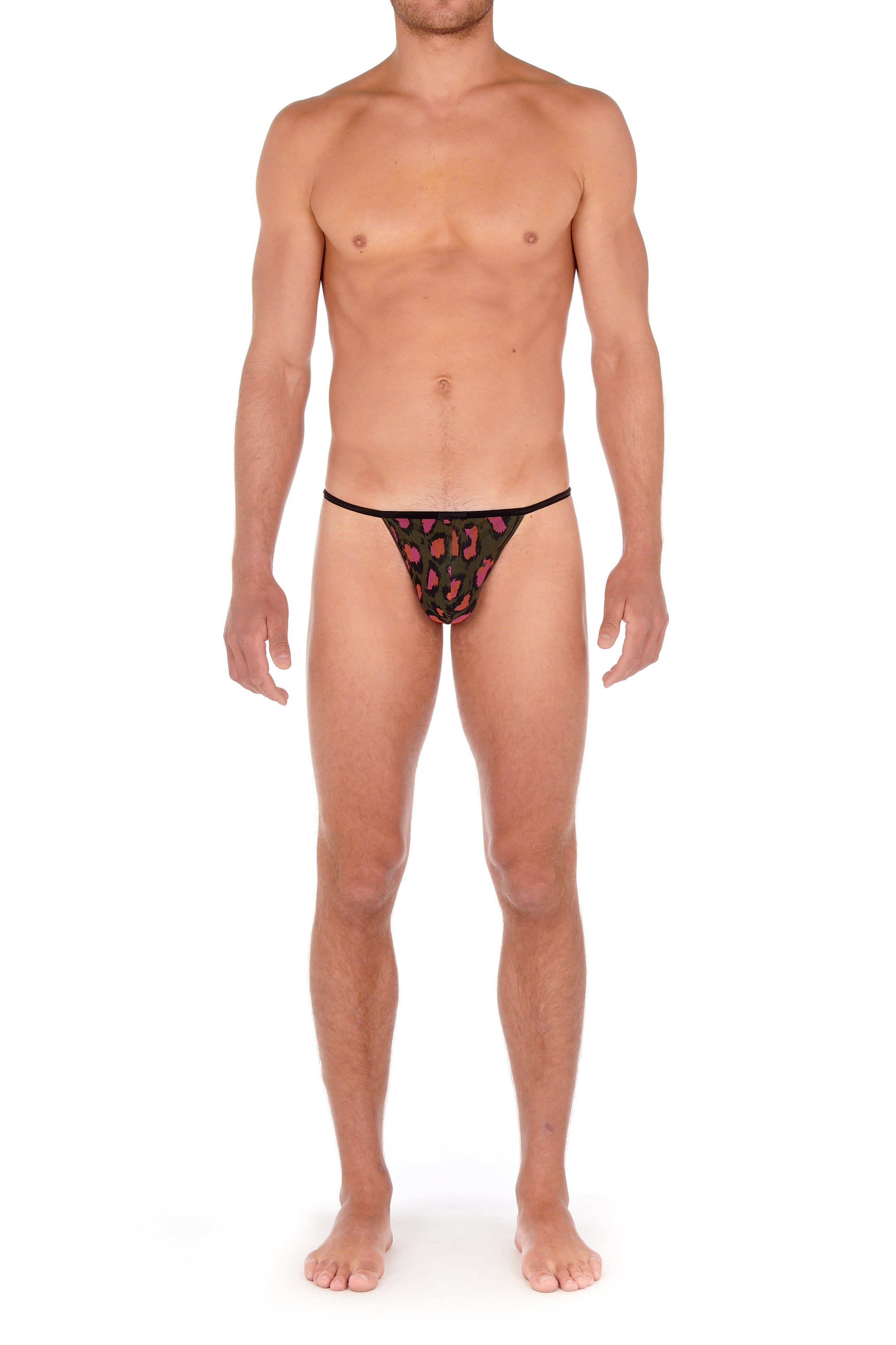 Wild meets refined in the Leonardo G-String by HOM, featuring a bold pink, orange, and black animal print on a khaki green backdrop. Crafted from a smooth polyamide-elastane blend, it offers a lightweight, second skin fit with just the right amount of stretch. The minimal cut and signature HOM logo waistband brings a sleek, confident finish. Playful, provocative, and made to stand out.